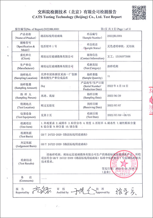 玻璃珠檢測報告